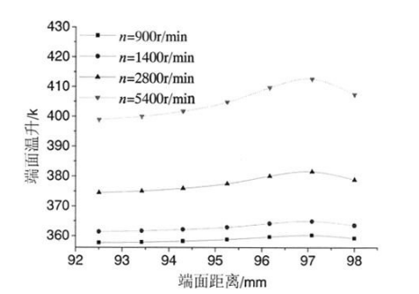 1.熱油泵機(jī)械密封轉(zhuǎn)速對熱油泵機(jī)械密封端面溫度的影響